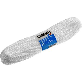 Шнур вязаный ПП 5мм 20м СИБИН, с сердечником, белый